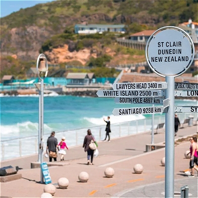 St Clair Beach in Dunedin, New Zealand, is a popular urban surf beach known for its consistent waves, esplanade with cafes, restaurants, and the historic St Clair Hot Salt Water Pool, offering a vibrant spot for surfing, walking, swimming, and dining with ocean views, just minutes from the city centre.